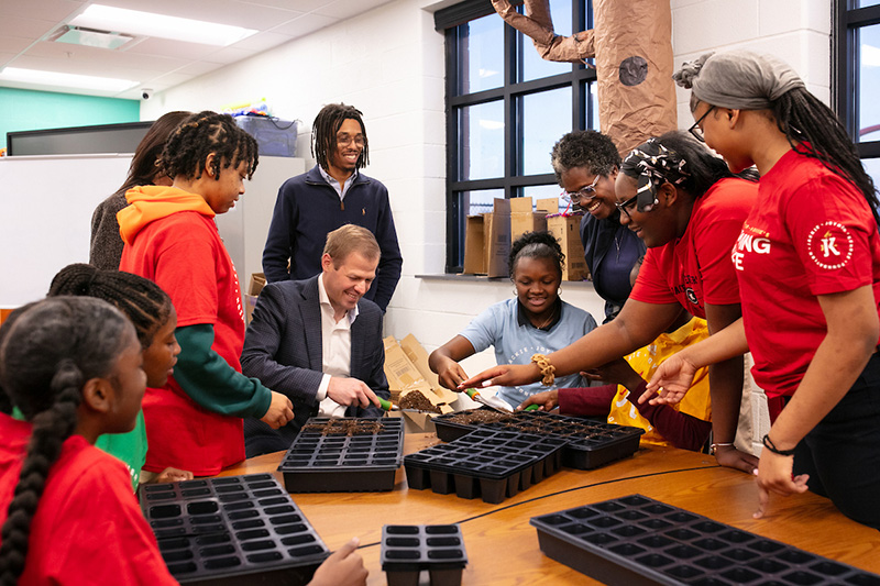 JJK-FAN students plant starter seed trays with help from CoBank volunteers. CoBank supports the Danforth Plant Science Center’s mission to advance plant science research and ag innovation.