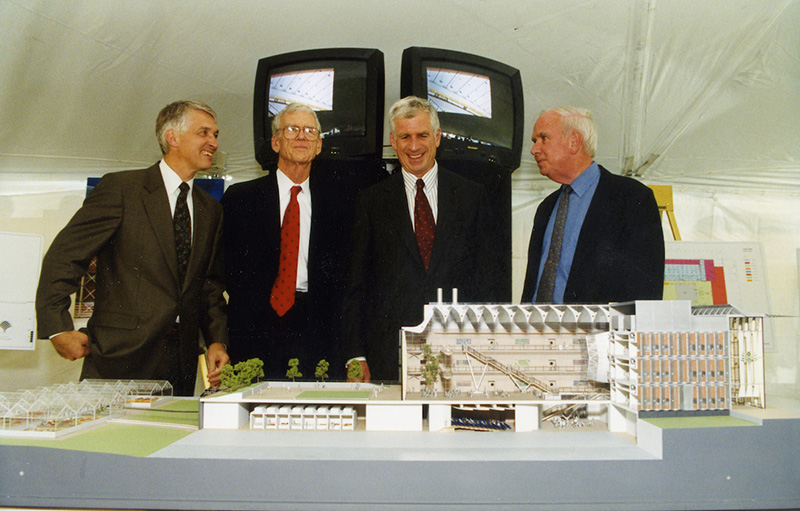Bill Danforth with, from left, Danforth Center President Roger Beachy, Bill’s brother Senator Jack Danforth, and Missouri Botanical Garden President Peter Raven at the groundbreaking for the Danforth Center building.